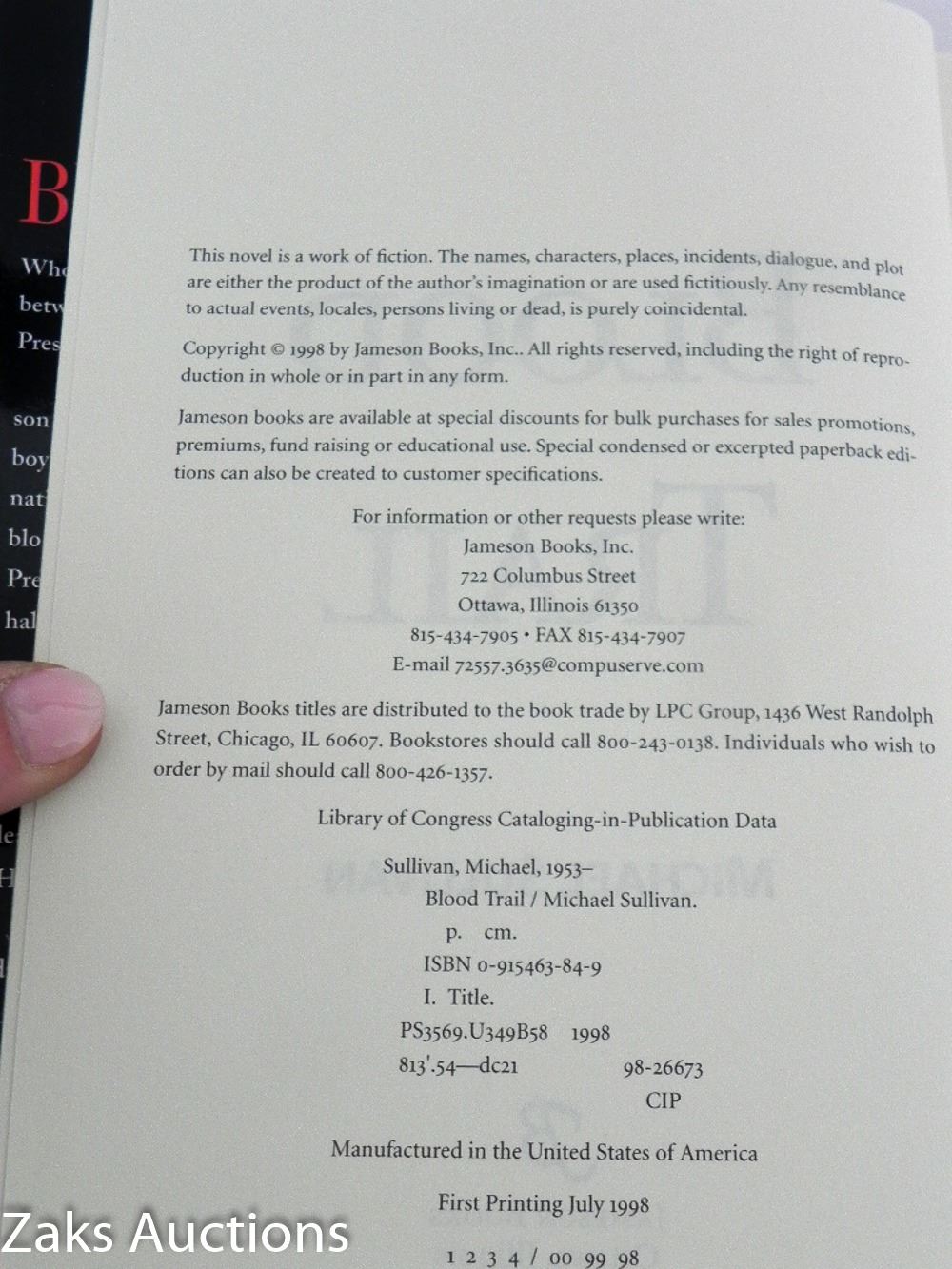 1998 BLOOD TRAIL - MICHAEL SULLIVAN. HARDCOVER