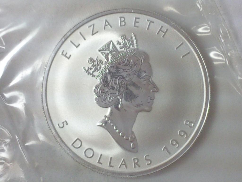 1998 CANADA $5 MAPLE LEAF 1 0Z SILVER (UNC)