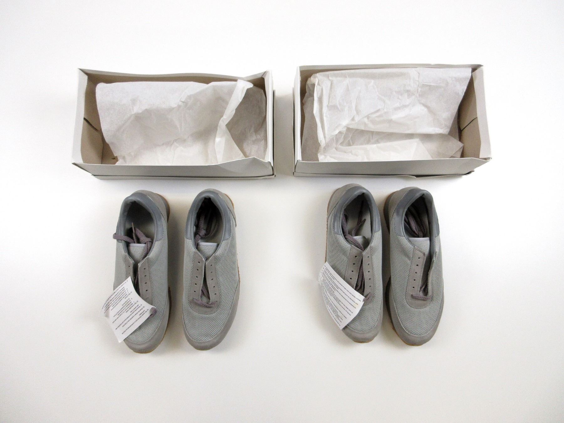 LOT INCLUDES; (2) PAIRS OF GREY RUNNING SHOES, SIZE 8 1/2 W, SHOES MARKED: "8430-21-899-2496, 8 1/2 W, AUG 31 98", NOS, TAGS STILL ATTACHED & IN ORIGINAL PACKAGING. SEE PHOTOS.