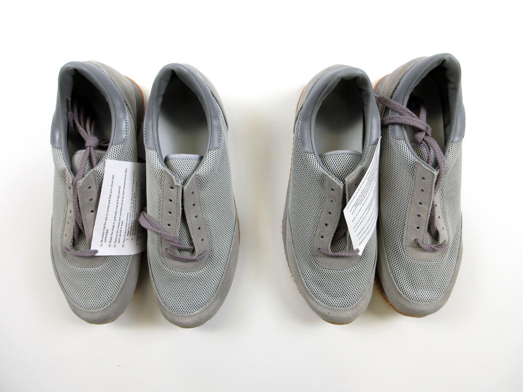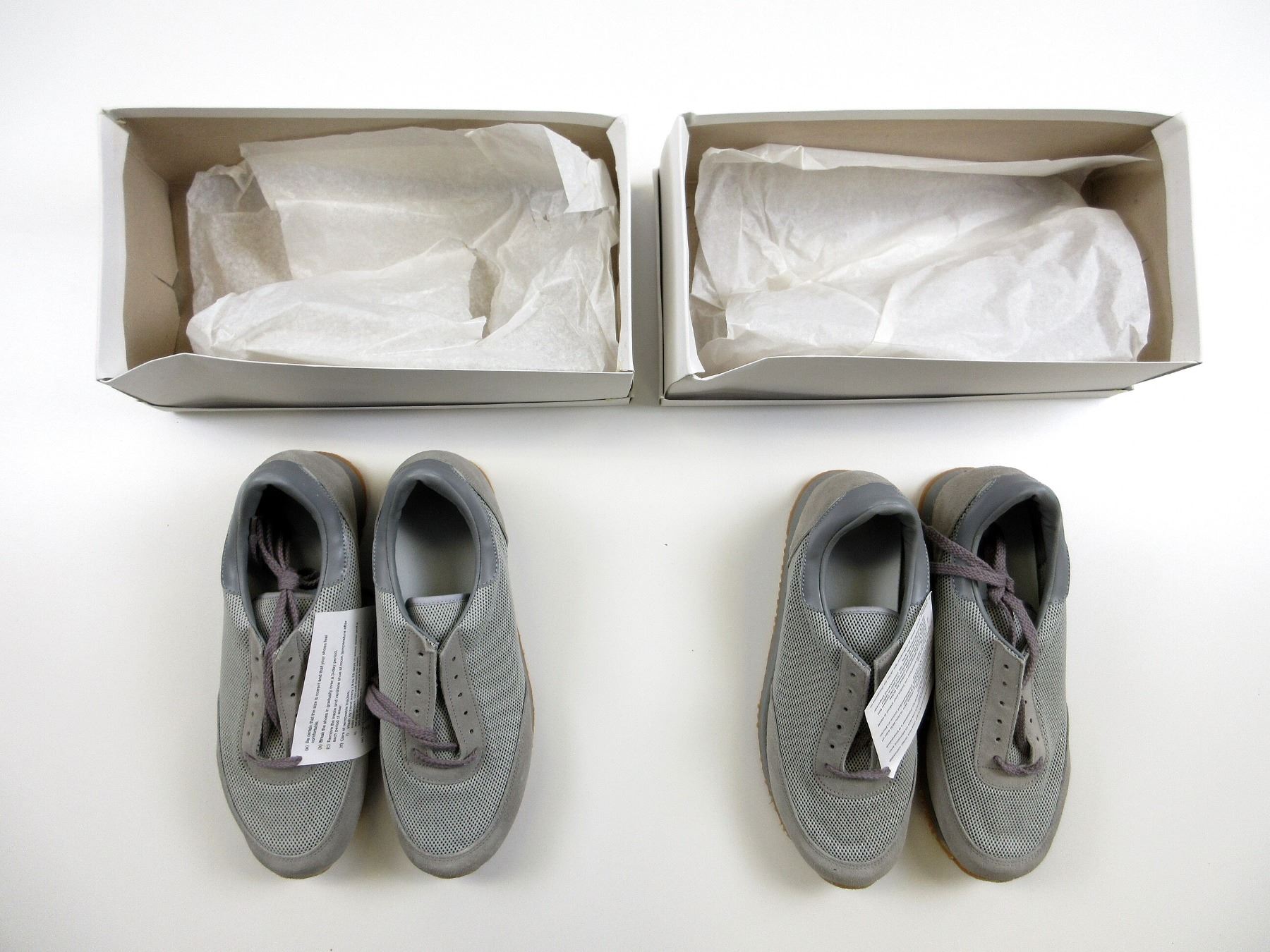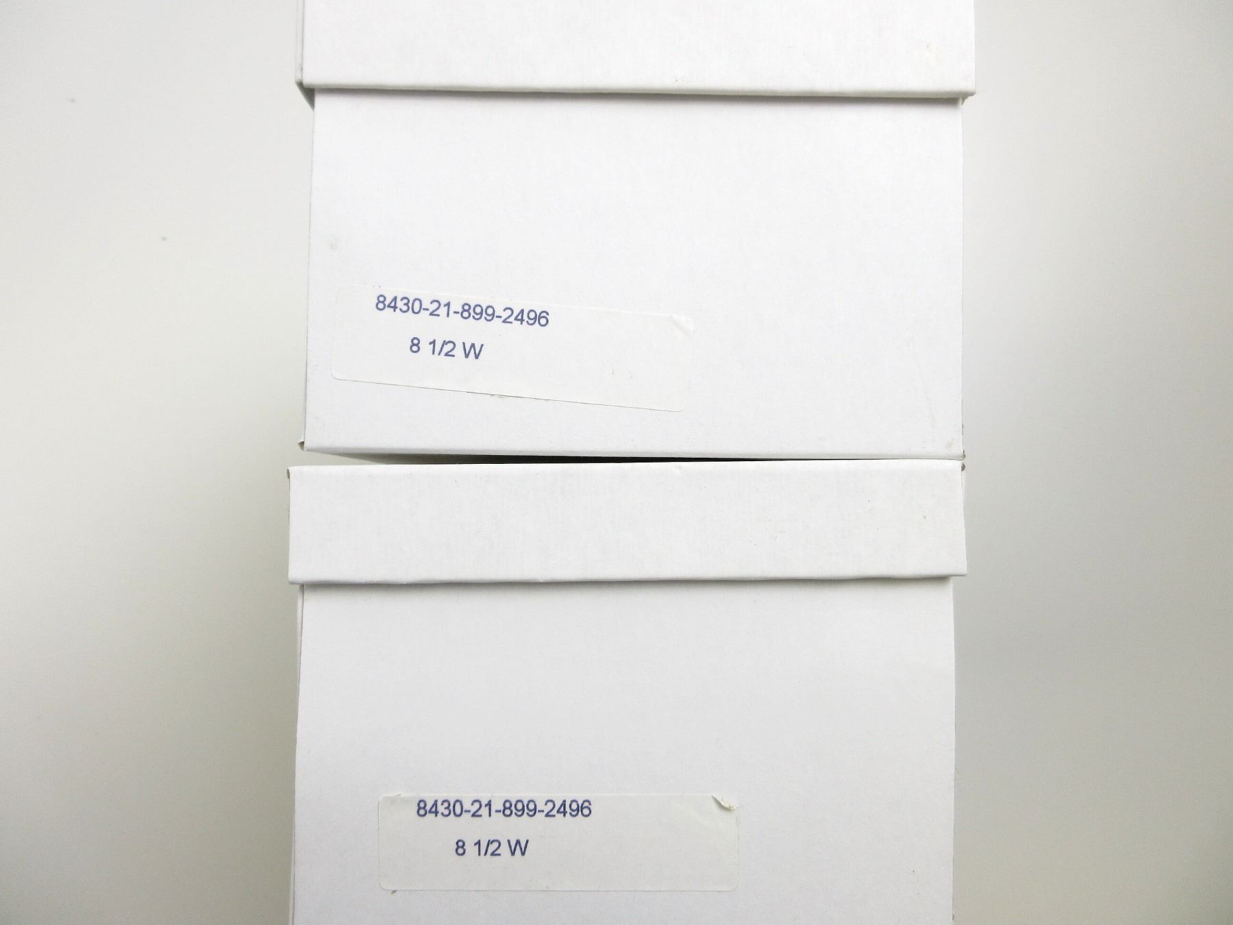 LOT INCLUDES; (2) PAIRS OF GREY RUNNING SHOES, SIZE 8 1/2 W, SHOES MARKED: "8430-21-899-2496, 8 1/2 W, AUG 31 98", NOS, TAGS STILL ATTACHED & IN ORIGINAL PACKAGING. SEE PHOTOS.