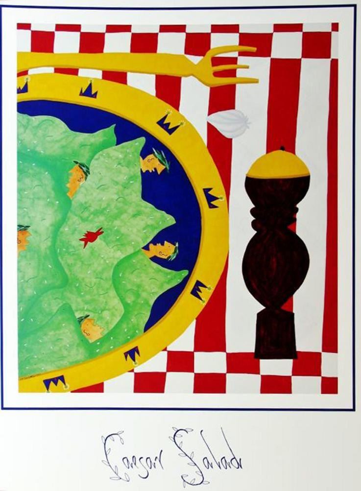 1998 Caesar Salad Hubbard Abstract Pop Whimsical Food Related Print | Unframed Size: 23X18 | Value: $130