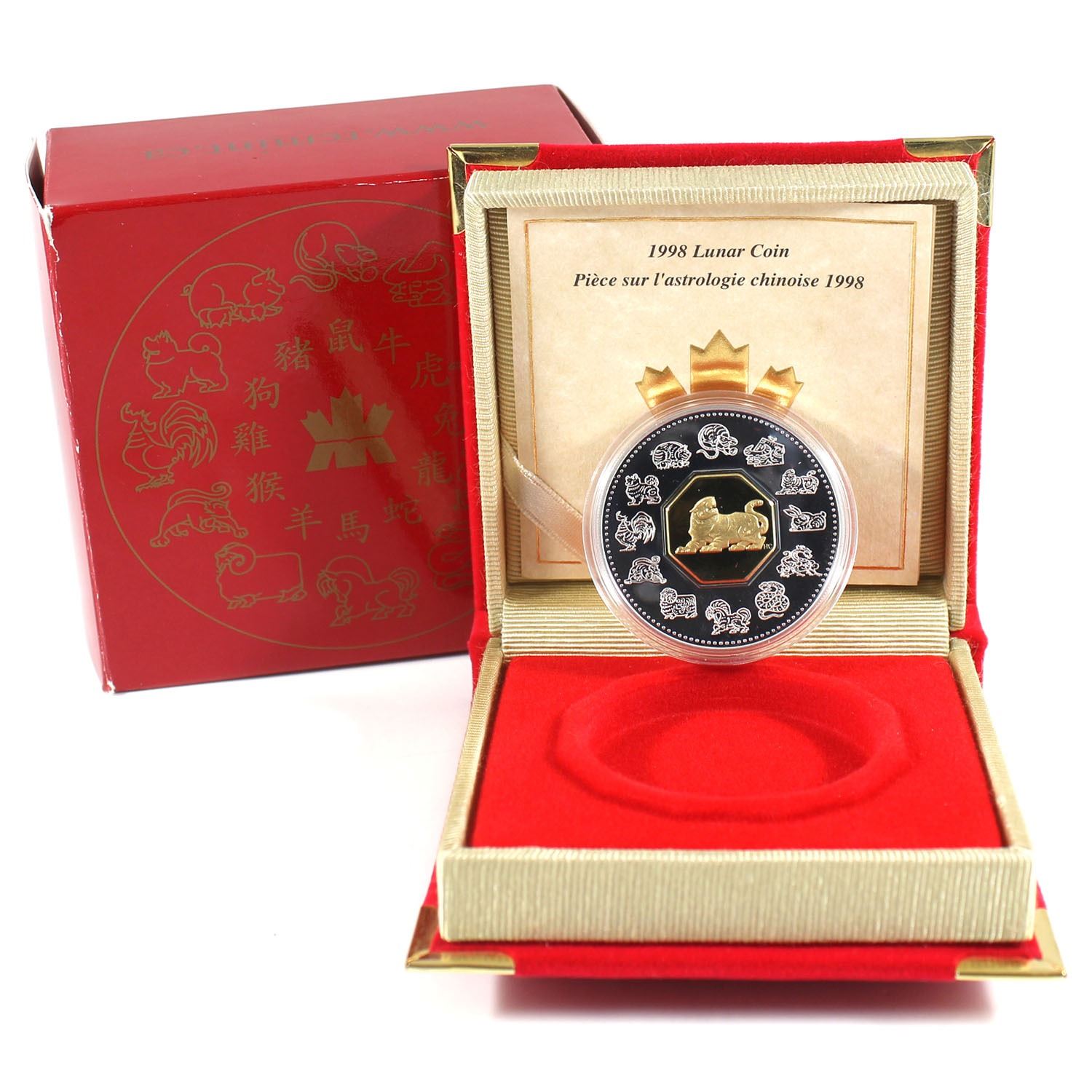 1998 Canada $15 Year of the Tiger Sterling Silver with Gold Plated Cameo (capsule lightly scratched & sleeve is bent).