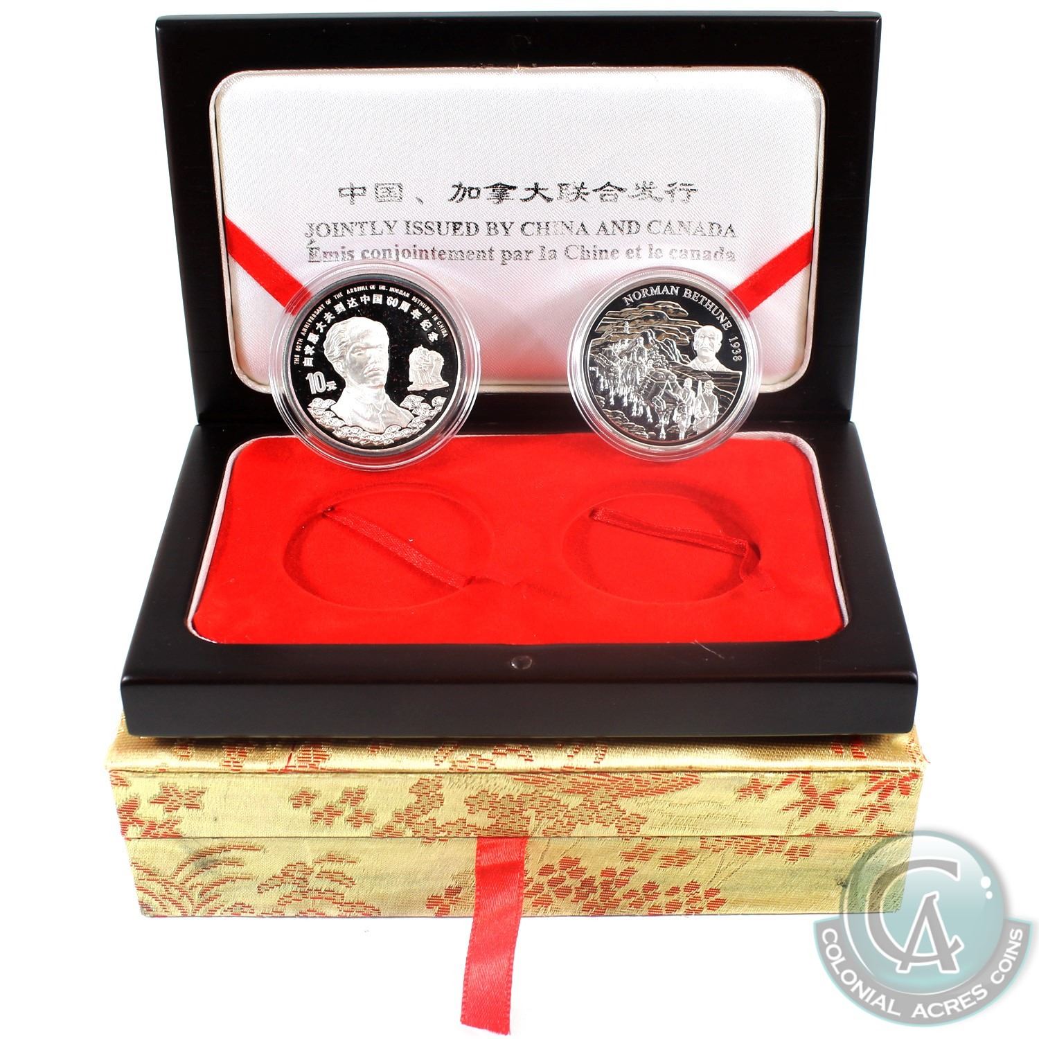 1998 Canada $5 60th Anniversary of Norman Bethune's Arrival in China Coin 2-coin Set (TAX Exempt). Coin contain natural toning and outer b ox showing signs of ageing.