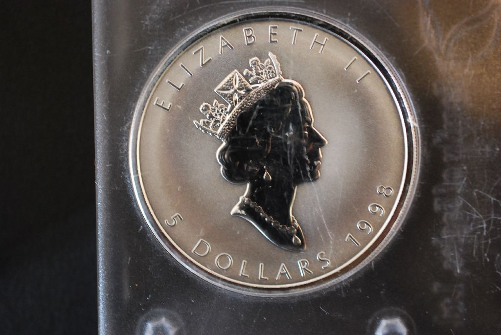 1998 Canada $5 "Maple Leaf"; 9999 Fine Silver 1 Oz.; EST. $50-60