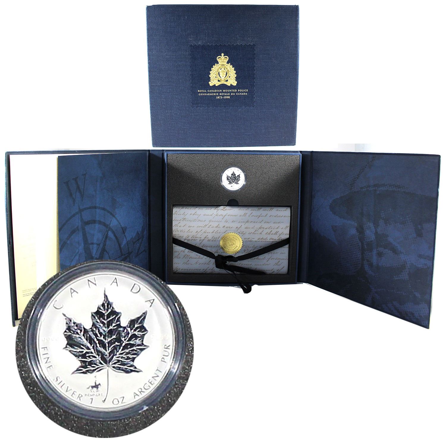 *1998 Canada $5 Royal Canadian Mounted Police (RCMP) Privy Mark 1oz. Silver Maple Leaf Set in Hard Blue Folder. Outer folder scuffed; lightly toned. (Tax Exempt)