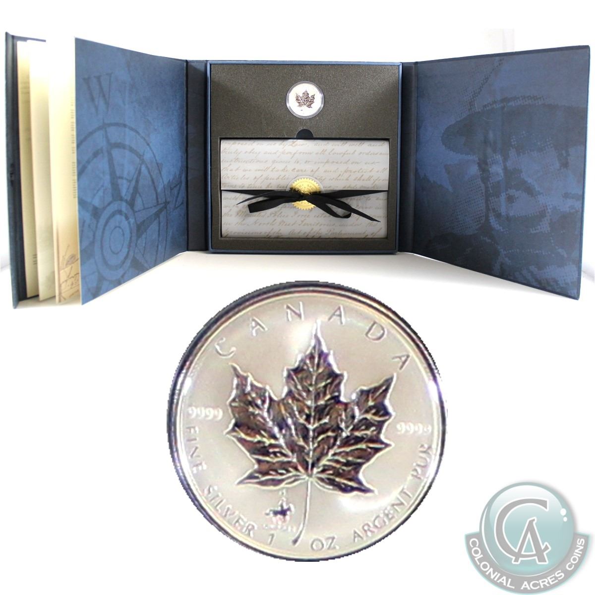 1998 Canada $5 Royal Canadian Mounted Police (RCMP) Privy Mark 1oz. Silver Maple Leaf Set in Hard Blue Folder (Outer folder slightly discoloured). TAX Exempt