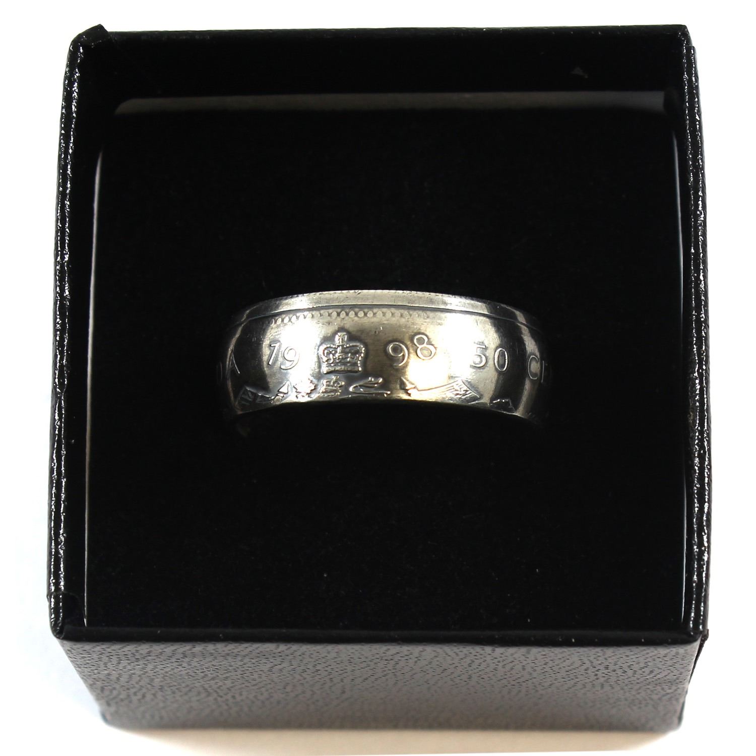 1998 Canada Silver 50ct Coin Custom Jewellery Ring Size 10 - Made from a real 50-cent coin!