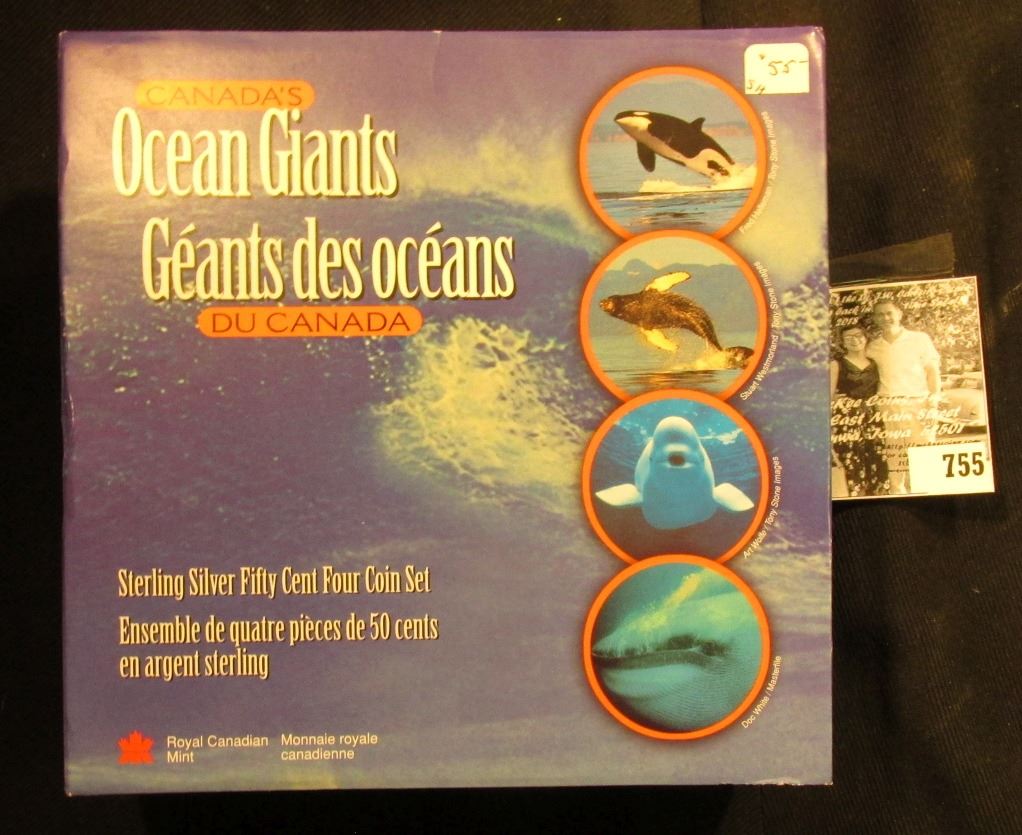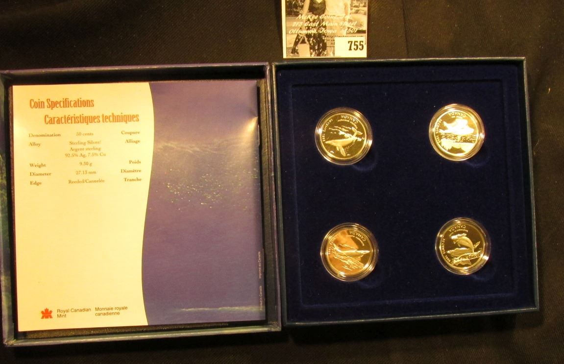 1998 "Canada's Ocean Giants Sterling Silver Fifty Cent Four Coin Set in original box of issue.