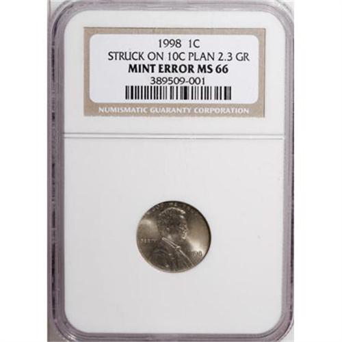 1998 Cent--Struck on Dime Planchet--MS66 NGC