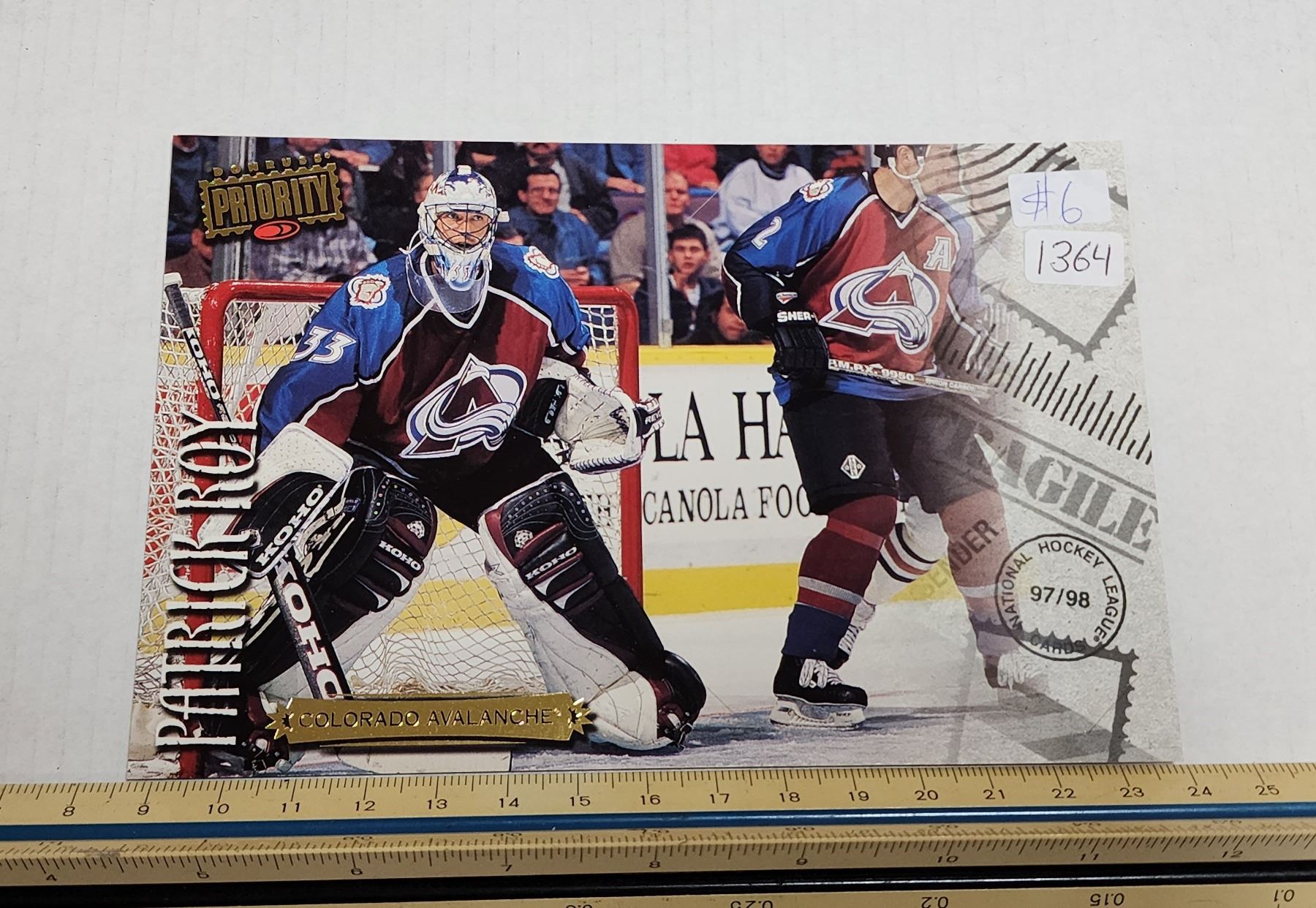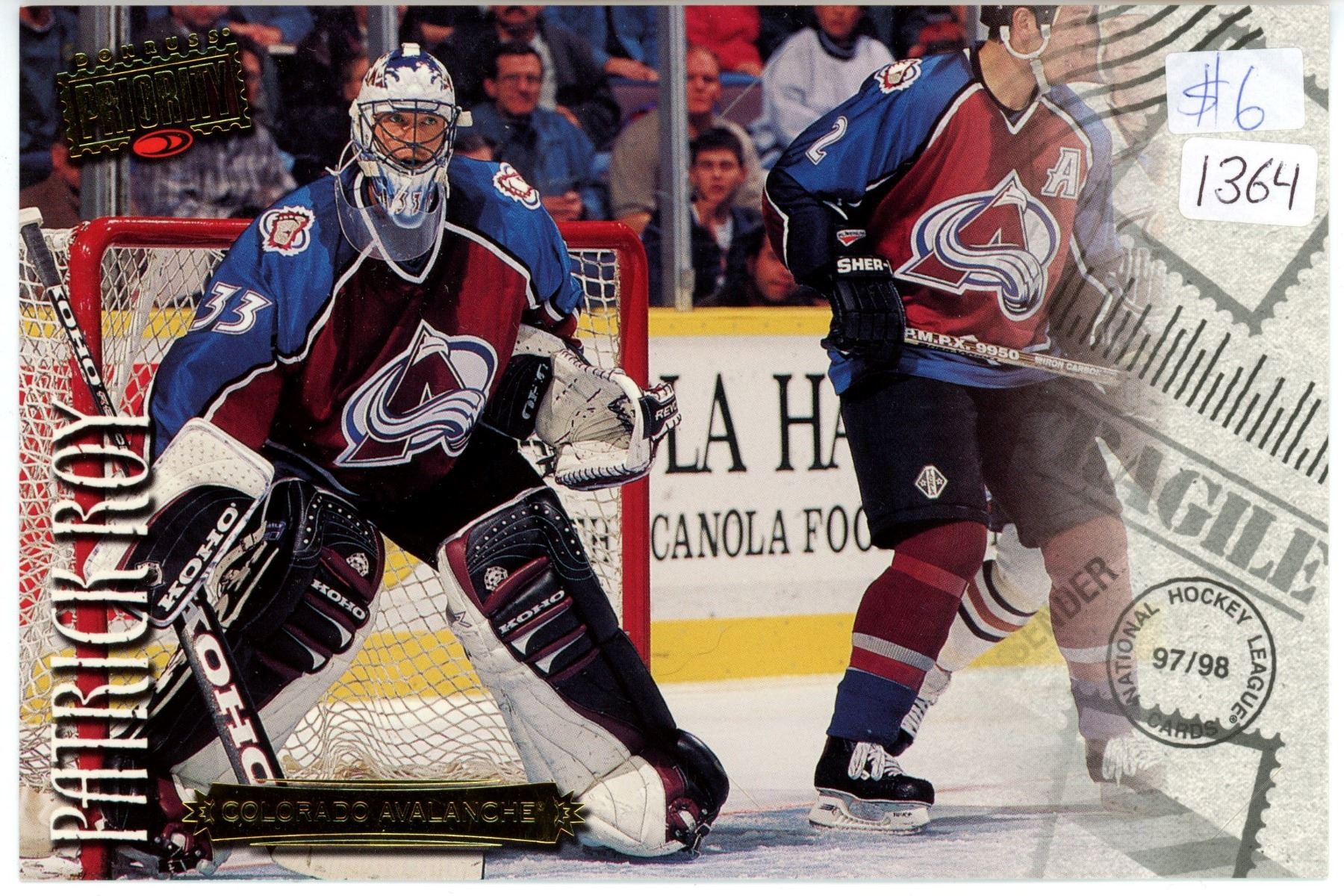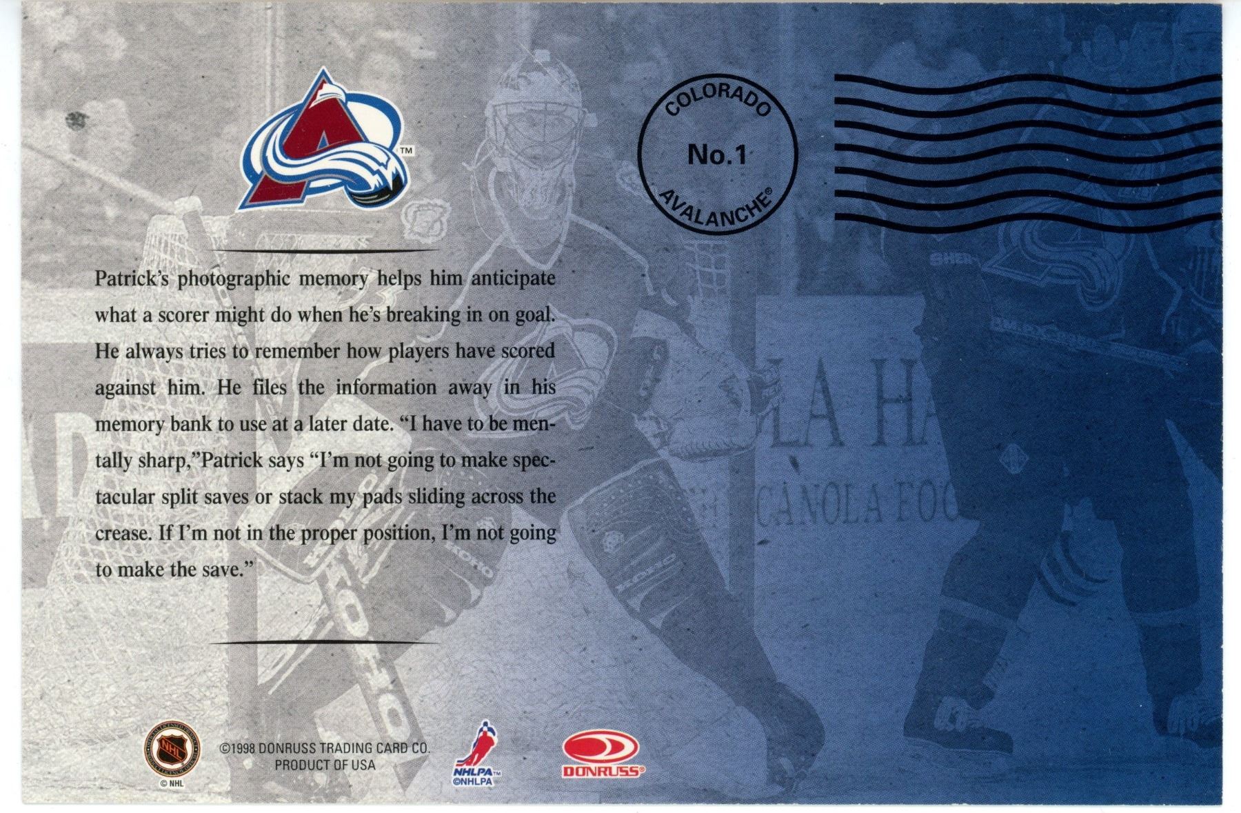 1998 Donruss, Patrick Roy #01 - postcard style NHL card