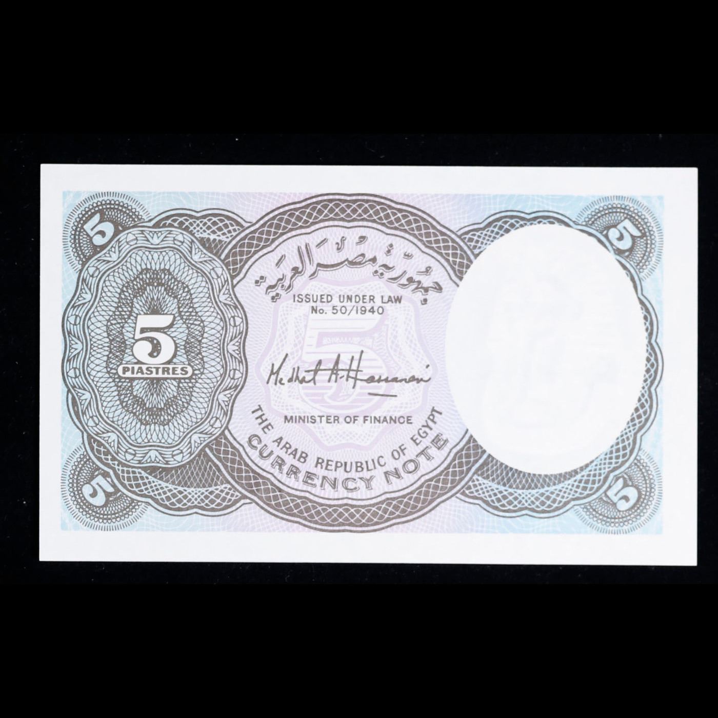 1998 Eygpt 5 Piastres Note P# 188 Grades Gem+ CU.
