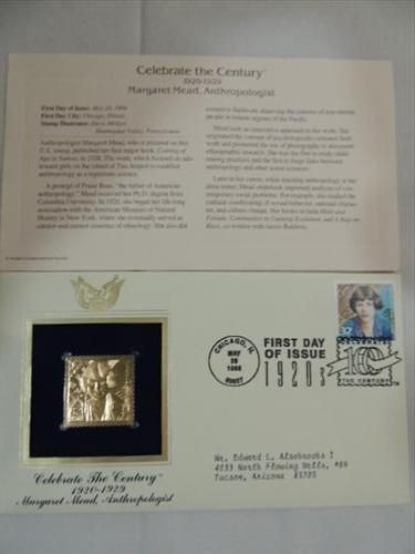 1998 FIRST DAY ISSUE POSTAL COVER MARGRET MEAD & GOLD STAMP. AS SHOWN. VIEW PICTURE FOR DETAIL.