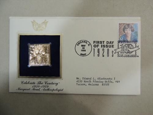 1998 FIRST DAY ISSUE POSTAL COVER MARGRET MEAD & GOLD STAMP. AS SHOWN. VIEW PICTURE FOR DETAIL.