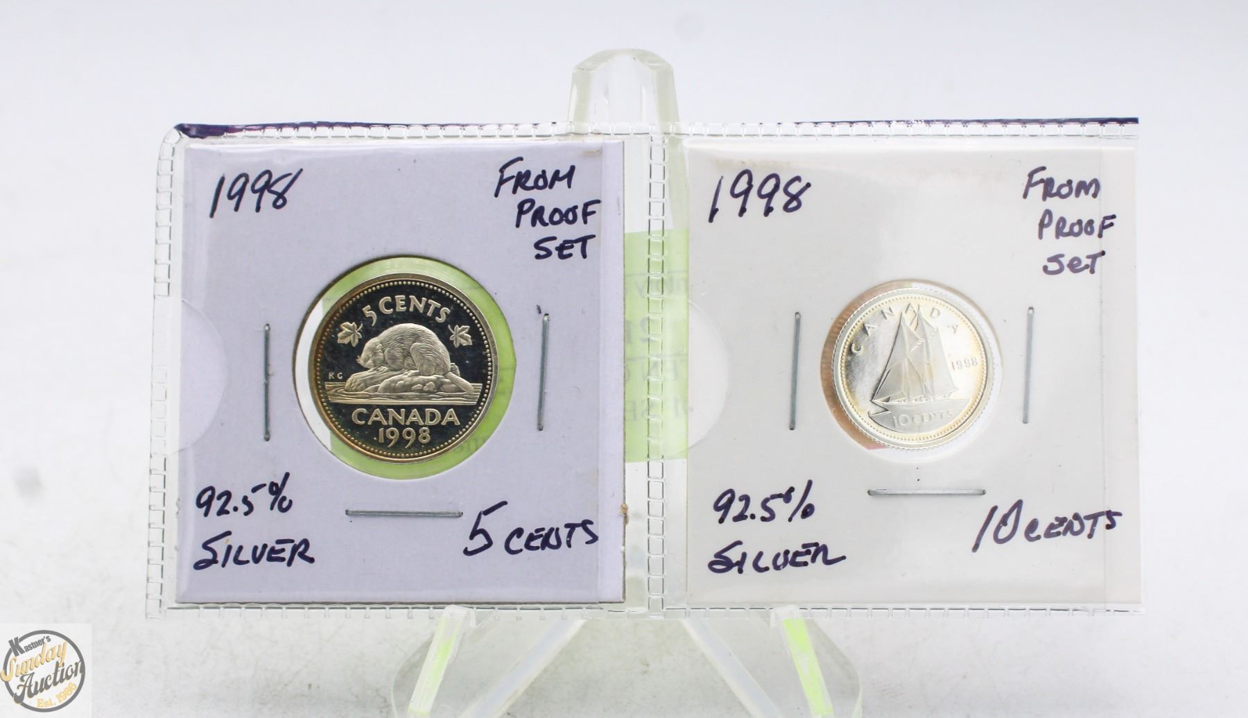 1998 FIVE+TEN CENT 92.5% SILVER FROM PROOF SET