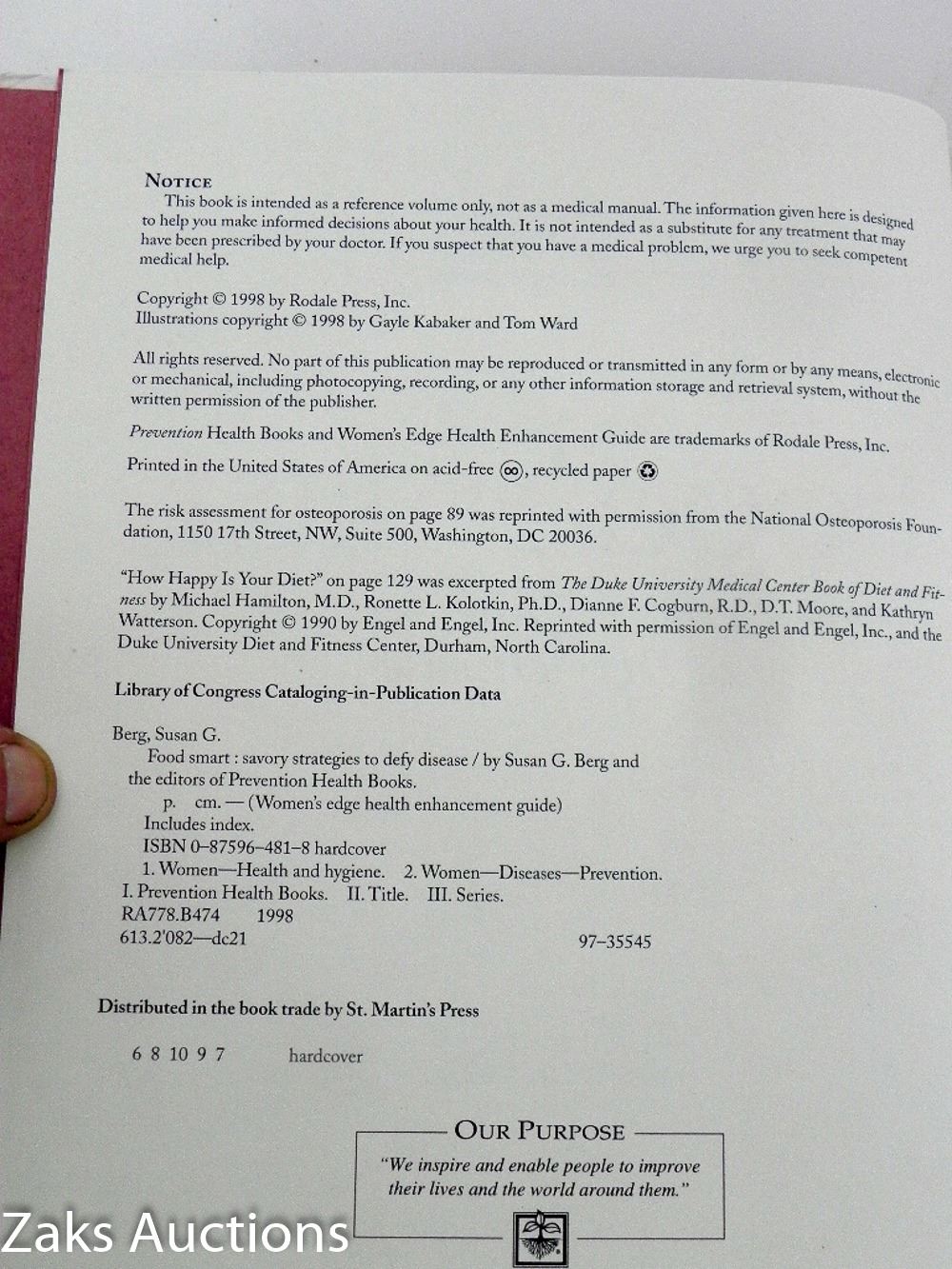 1998 FOOD SMART - SUSAN G. BERG, EDITORS OF PREVENTION HEALTH BOOKS. HARDCOVER