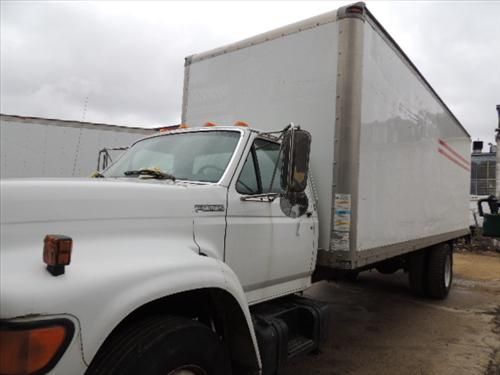 1998 FORD F70 MEDIUM-HEAVY DUTY, REGULAR CAB BOX TRAILER. GASOLINE FUELED. 119,185 MILES. HYDRAULIC LIFT. AS SHOWN. VIEW PICTURE FOR DETAIL.
