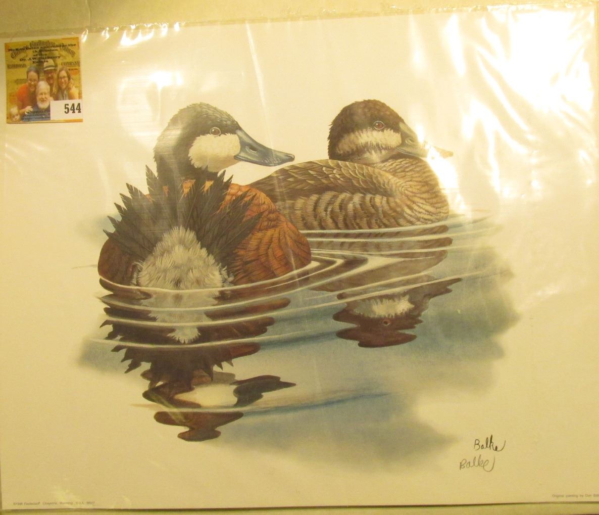 1998 Fleetwood hand autographed print of a pair of Ruddy Ducks by Don Balke, 10.5" x 13.25".