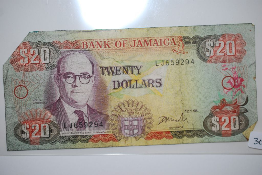 1998 Jamaica $20 Foreign Bank Note; EST. $3-6