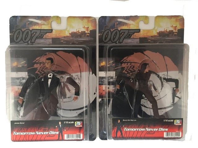 James Bond 007 Tomorrow Never Dies set of 2 1/16 scale collectible action figures featuring Bond Girl Wai Lin and James Bond. Dragon Models Ltd., 1998. New in package. Great condition. (10"x7")