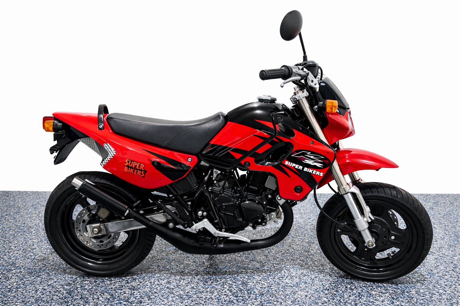 Power comes from the KX 80–inspired liquid-cooled two-stroke engine, mated to a 6-speed manual transmission, delivering sharp throttle response and an authentic, high-revving powerband synonymous with Kawasaki’s 1990s performance machines.