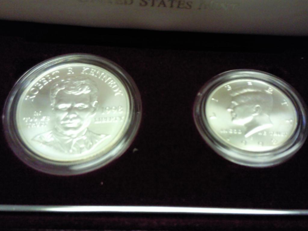 (UNC), RFK SILVER DOLLAR AND MATTE FINISH KENNEDY HALF DOLLAR SILVER, ORIGINAL US MINT PACKAGING, (BETTER SET)