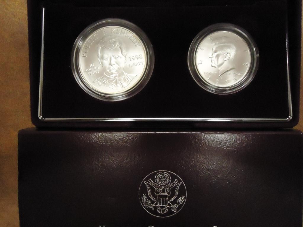 CONTAINS: THE UNC ROBERT F. KENNEDY SILVER DOLLAR AND THE MATTE FINISH KENNEDY SILVER HALF DOLLAR, ORIGINAL US MINT PACKAGING, LOOK THIS ONE UP!
