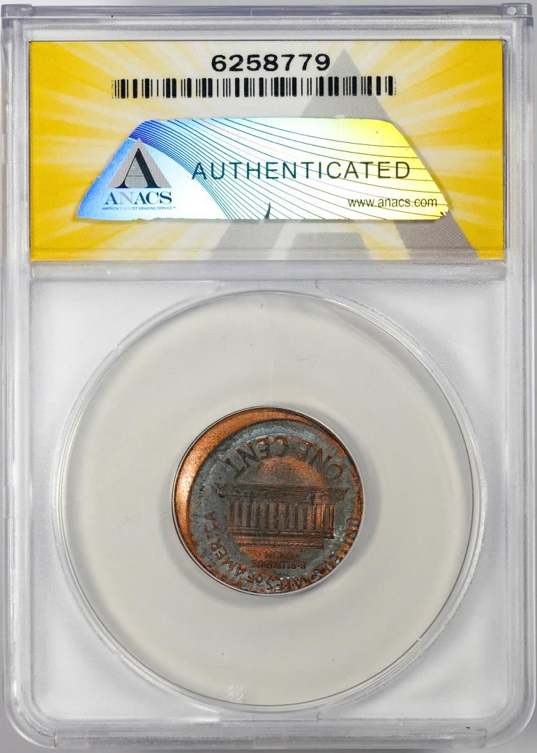 One 1998 Lincoln Memorial Cent Coin Error Struck 10% Off Center @ K-8:00 ANACS MS60 RED. ANACS Certified.