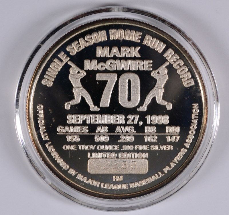 1998 MARK McGWIRE 1oz .999 SILVER ROUND, LIMITED EDITION 70 HOME RUN