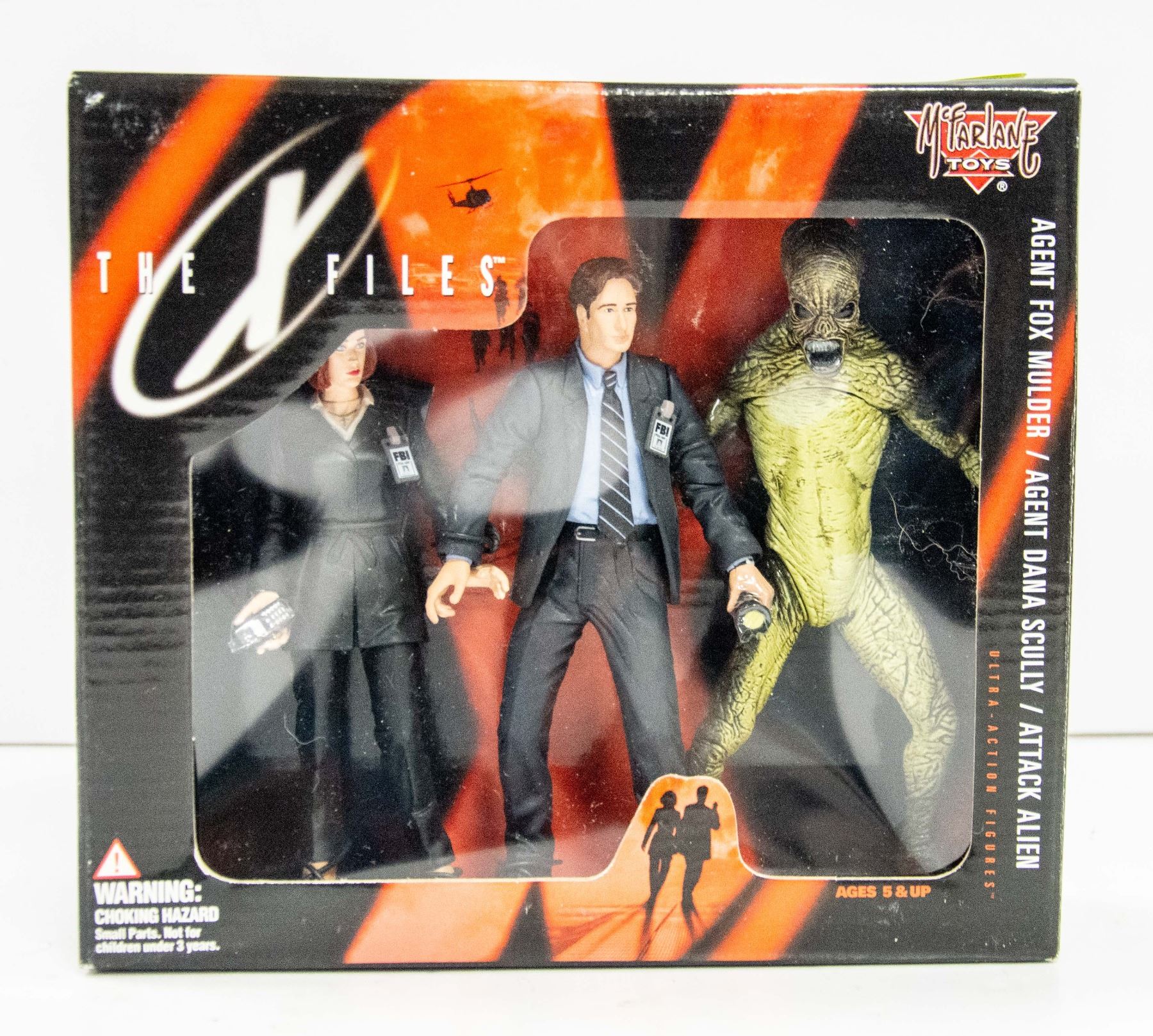 AGENT FOX MULDER, AGENT DANA SCULLY AND ATTACK ALIEN. UNOPENED, NEW ON CARD.