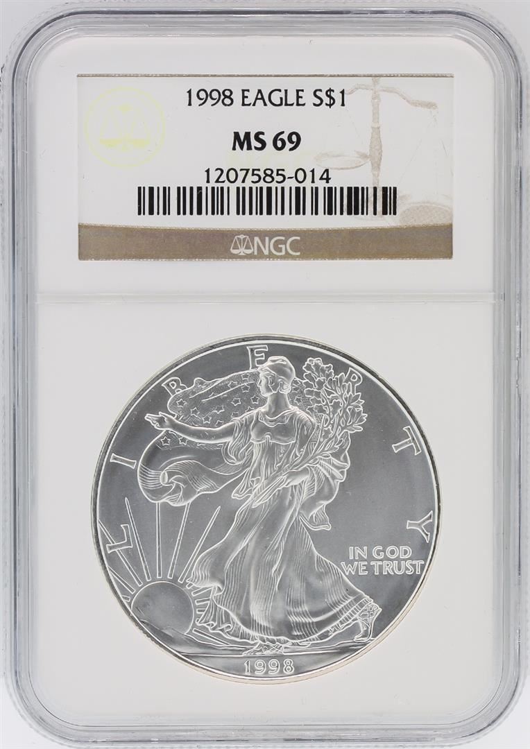One 1998 NGC MS69 American Silver Eagle Dollar . NGC Certified.