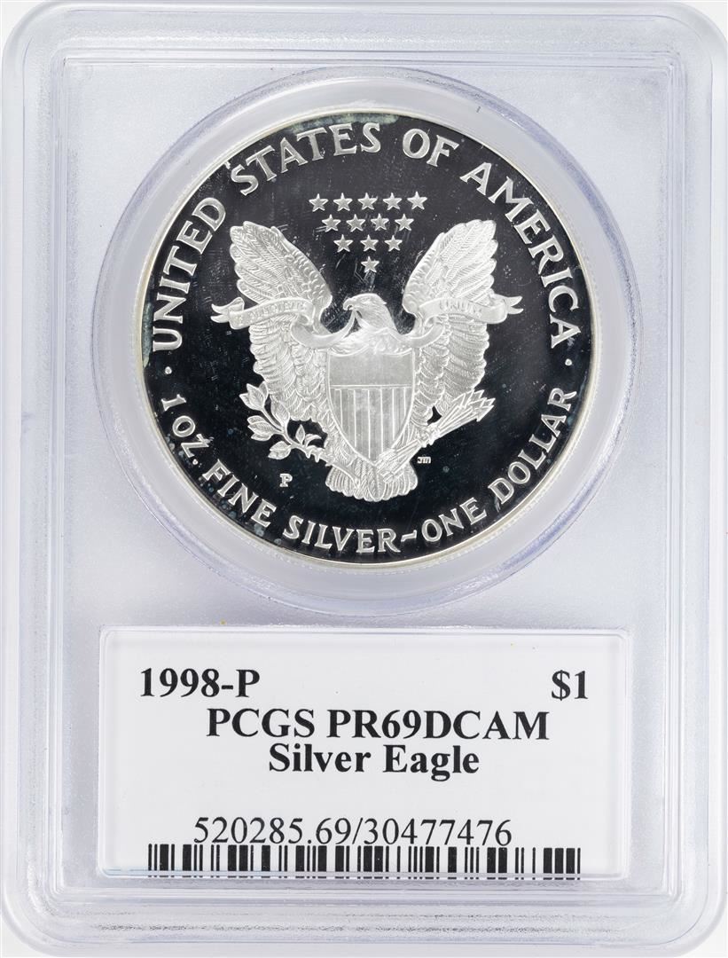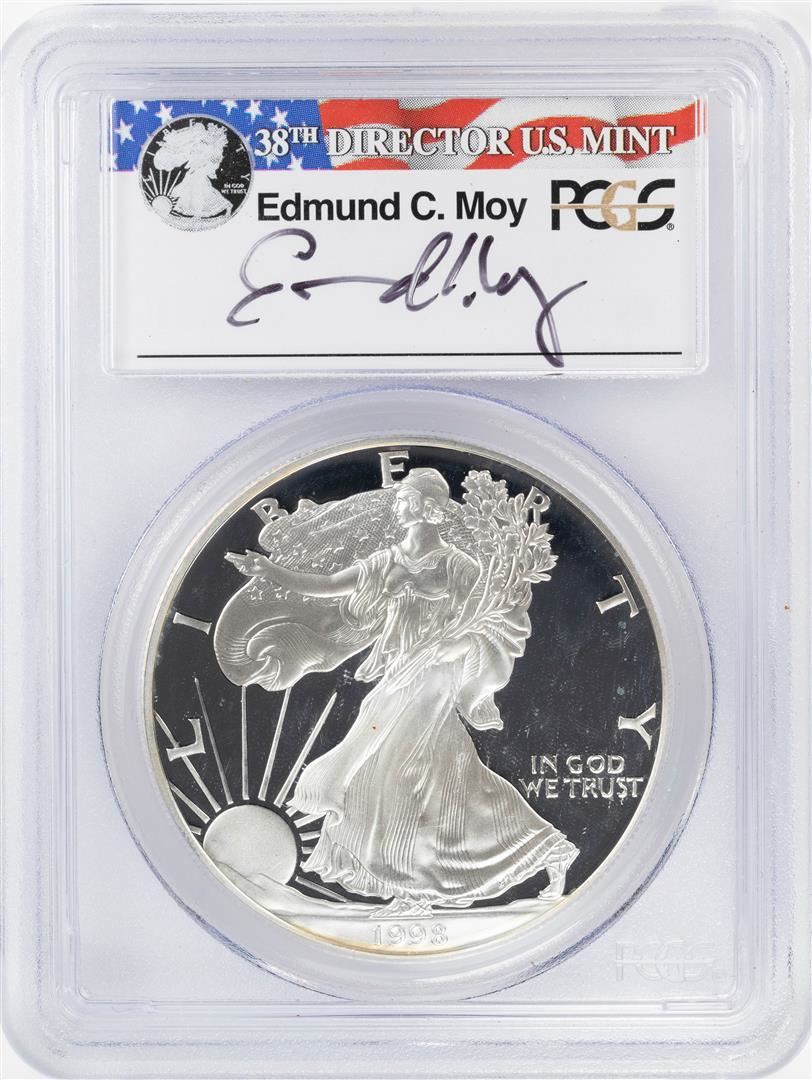 One 1998-P $1 Proof American Silver Eagle Coin PCGS PR69DCAM Moy Signature. PCGS Graded.