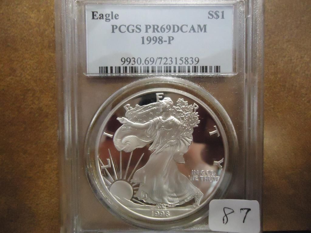 1998-P AMERICAN SILVER EAGLE PCGS PR69 DCAM