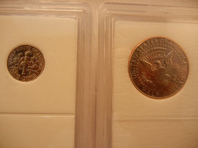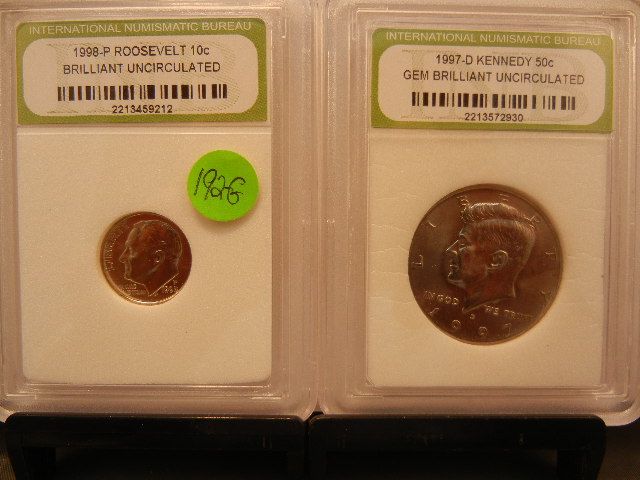 1998-P BU UNC. Roosevelt Dime & 1997-D Gem BU UNC Kennedy Half Dollar Graded By INB