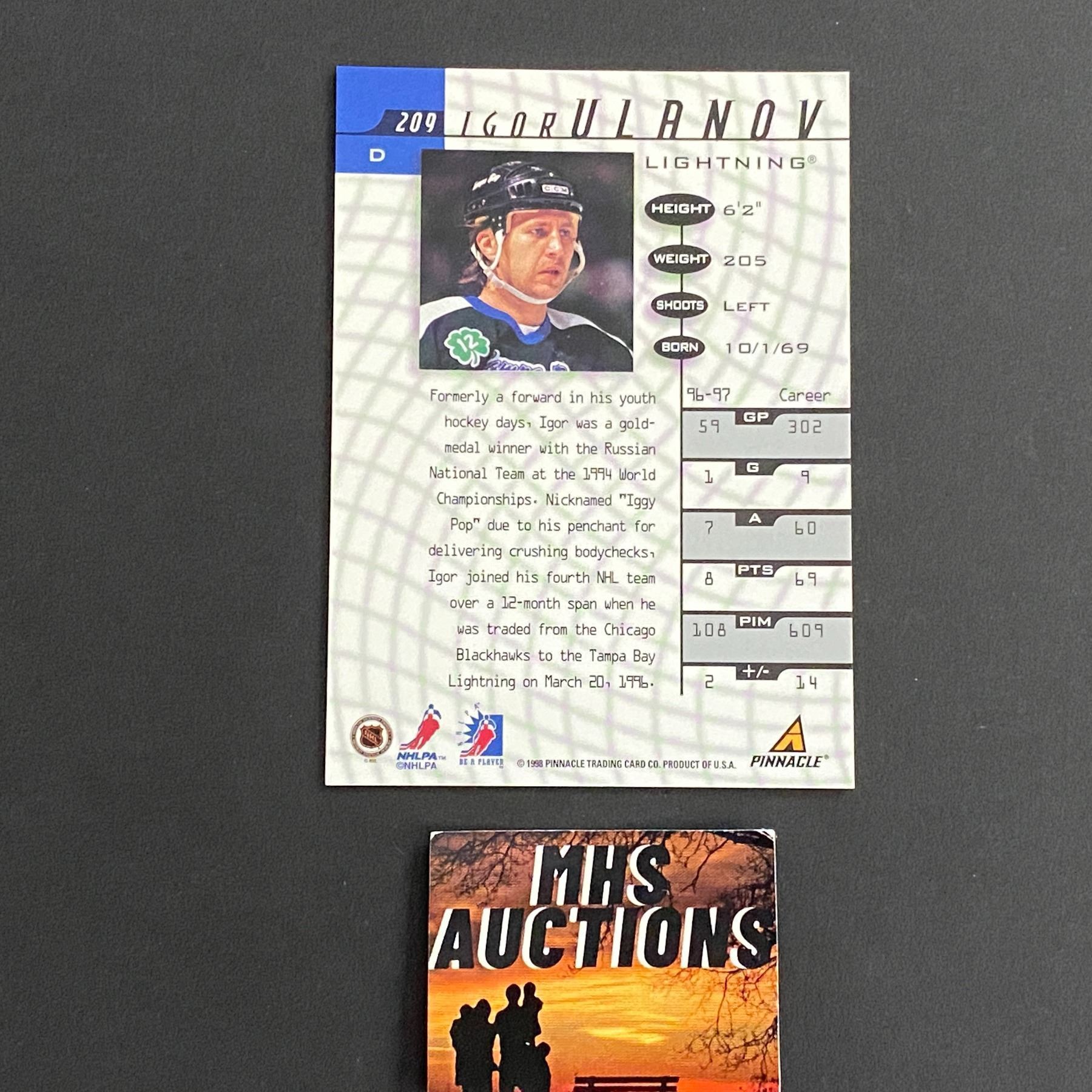 1998 PINNACLE IGOR ULANOV AUTOGRAPH CARD