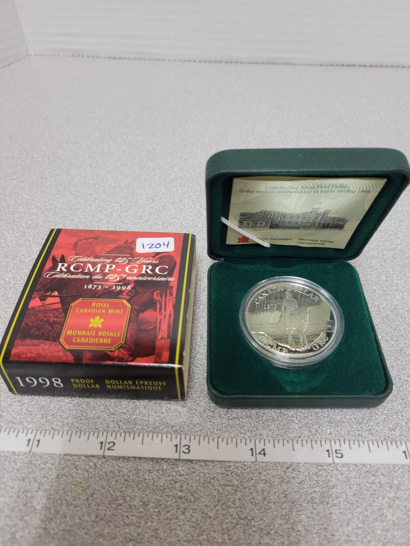 1998 RCMP Silver Dollar. 125th Anniversary of the founding of the North West Mounted Police. Proof with Ultra Heavy Cameo. Housed in its original case & box of issue.