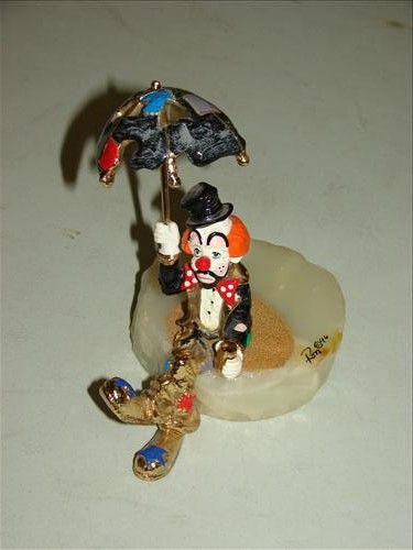 1998 RON LEE CLOWN STATUE. HOBO CLOWN WITH UNBRELLA. STANDS 6.5" TALL. AS SHOWN.N VIEW PICTURE FOR DETAIL.