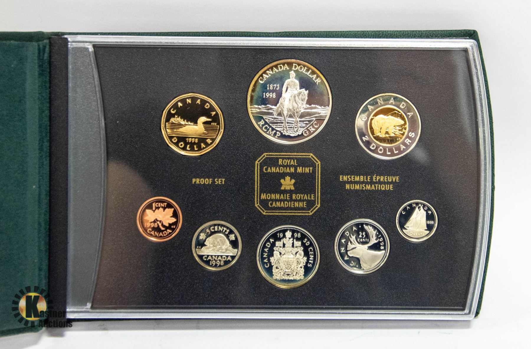 EIGHT COIN SET WITH FIVE STERLING SILVER COINS, MINT LOGO, DARK GREEN WALLET STYLE CASE, ENCAPSULATED COINS. LOON/RCMP/POLAR BEAR **ALL ITEMS MUST BE REMOVED BY 5PM SATURDAY, JANUARY 6TH 2023. ALL REMAINING ITEMS WILL BE SUBJECT TO A $6.00 PER DAY STORAGE CHARGE. ANY ITEMS REMAINING AFTER MONDAY, JANUARY 22ND, 2023 WILL BE CONSIDERED FORFEITED. NO REFUNDS WILL BE ISSUED FOR FORFEITED ITEMS. TO SCHEDULE A PICK UP APPOINTMENT CLICK HERE