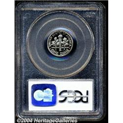 1998-S 10C Clad PR70 Deep Cameo PCGS. A splendid example that possesses snow-white devices and gorgeously preserved reflective fields. While generally available in lesser grades, perfect examples are presently quite rare. Population: 10 in 70 as a Deep Cameo (3/04). <BR><BR><B>Important notice:</B> Heritage usually auctions material at the rate of 200-250 lots per hour. On some occasions eBay Live bid software or the Internet may not be able to keep up with the pace of the auction. We recommend placing a realistic absentee bid now as insurance to avoid disappointment. Occasionally the auctioneer may eliminate or reject an eBay Live bid, and the auctioneer may also reopen a lot after the close of the eBay live bidding (usually because we missed an audience bid), and may reject your bid even if it shows you as the winning bidder. By bidding via eBay Live, you agree that Heritage may award the lot to another bidder at its sole discretion under the circumstances described above or any other reasonable circumstances. Since eBay bids are not shown to us until we open the lot on the floor, we treat those bids just like floor bids. In most cases the floor responds before the eBay bid is presented to us, due to Internet lag time, so for consistency we have made it a policy that floor bids are always considered first over tie eBay live bids. Also please note that all Heritage lots purchased through eBay Live carry a 20% Buyer's Premium. Please make sure you read the Terms and Conditions before you bid. <BR><BR><B>IMPORTANT ANNOUNCEMENT ABOUT RESERVES:</B> Heritage now divulges all reserves on its web site 7 days before every auction. If you want to know whether the reserve on this lot has been met, and if not, what the reserve amount is, please visit this lot page on the HeritageCoin.com web site, or email: bid@HeritageGalleries.com