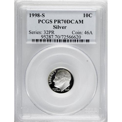 1998-S 10C Silver PR70 Deep Cameo PCGS. PCGS Popul