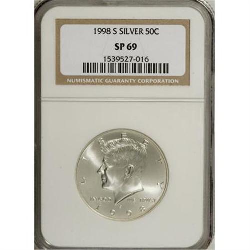 <B>1998-S 50C SMS MS69 NGC.</B></I> NGC Census: (601/194). PCGS Population (1398/148). Numismedia Wsl. Price for NGC/PCGS coin in MS69: $310. (#6775)<BR><BR><B>Coin Engraver:</B> Gilroy Roberts and Frank Gasparro<BR><BR><b>Shipping:</b> Coins & Currency (<a target="_blank" href="http://www.heritageauctions.com/common/shipping.php">view shipping information</a>)