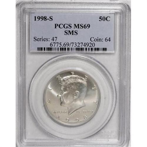<B>1998-S 50C SMS MS69 PCGS.</B></I> PCGS Population (1445/151). NGC Census: (640/205). Numismedia Wsl. Price for NGC/PCGS coin in MS69: $260. (#6775)<BR><BR><B>Coin Engraver:</B> Gilroy Roberts and Frank Gasparro<BR><BR><b>Shipping:</b> Coins & Currency (<a target="_blank" href="http://www.heritageauctions.com/common/shipping.php">view shipping information</a>)