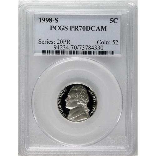 1998-S 5C PR70 Deep Cameo PCGS. PCGS Population (9