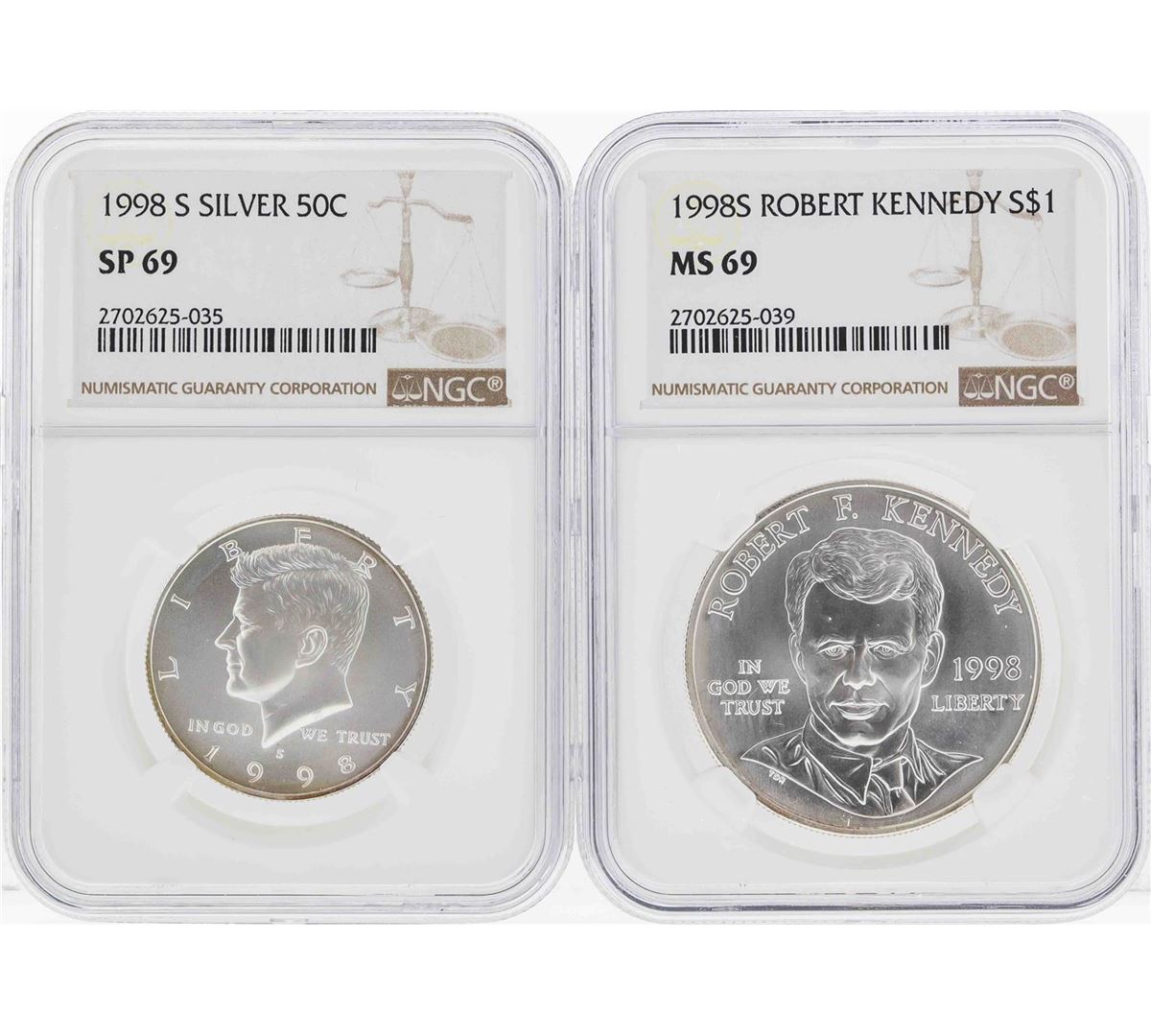 1998-S Kennedy Half Dollar NGC SP69 & 1998-S $1 Kennedy Silver Dollar NGC MS69