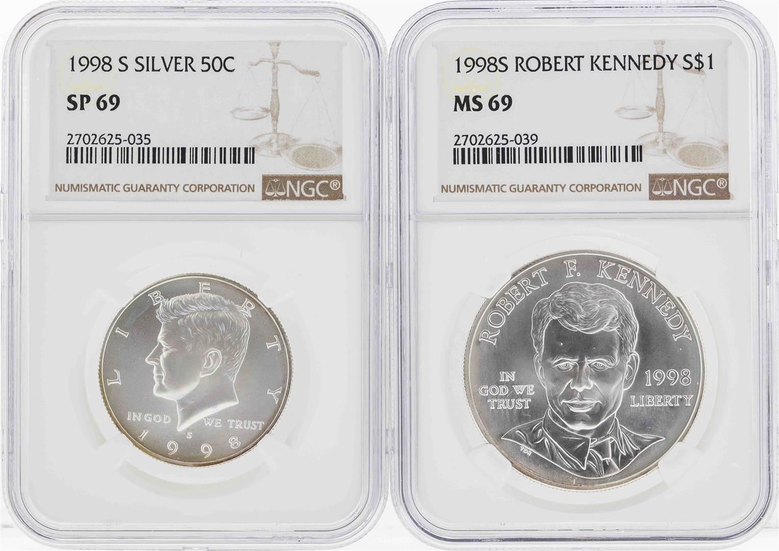 1998-S Kennedy Half Dollar NGC SP69 & 1998-S $1 Kennedy Silver Dollar NGC MS69