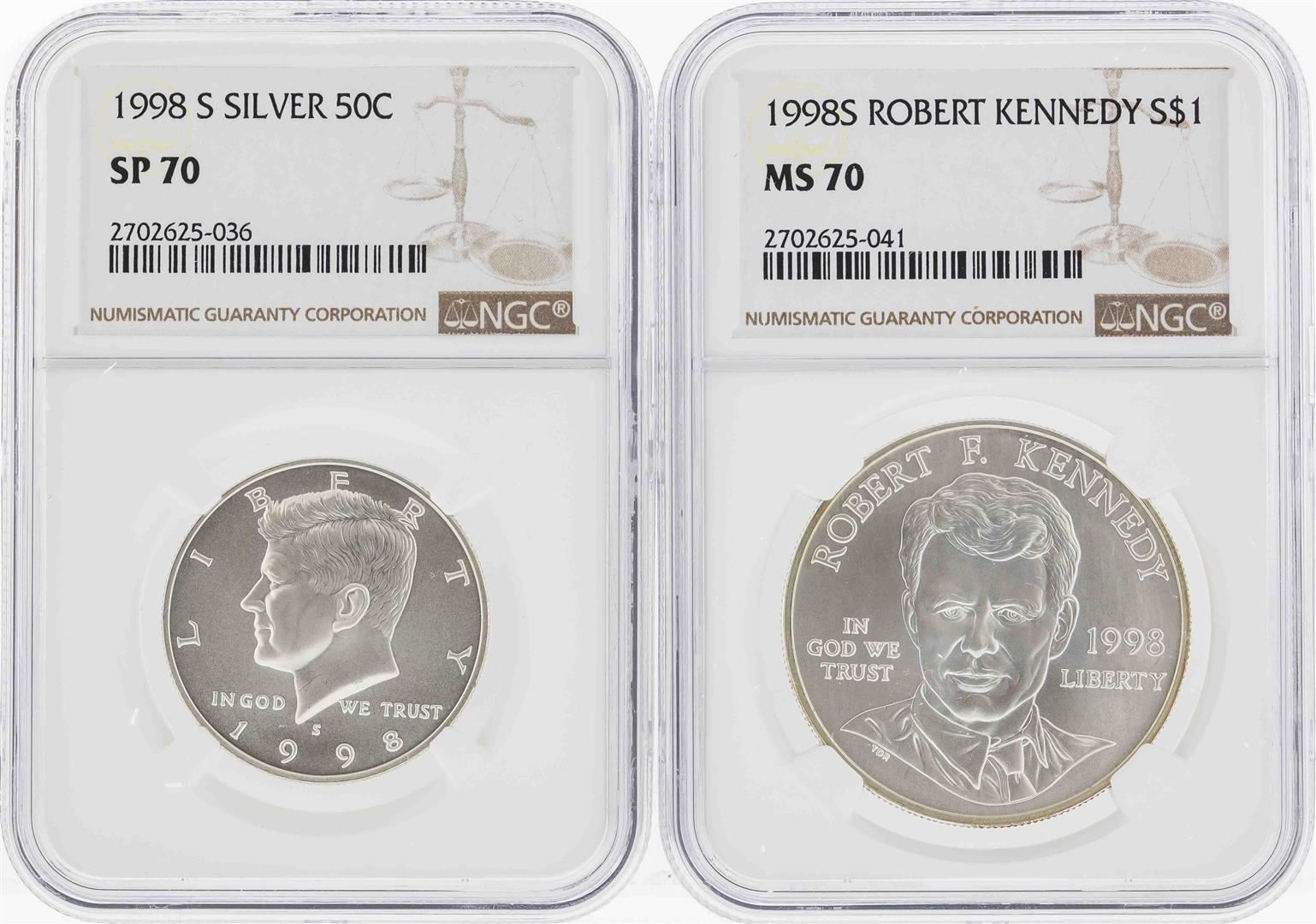 1998-S Kennedy Half Dollar NGC SP70 & 1998-S $1 Kennedy Silver Dollar NGC MS70