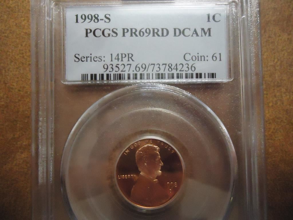 1998-S LINCOLN CENT PCGS PR69RD DCAM