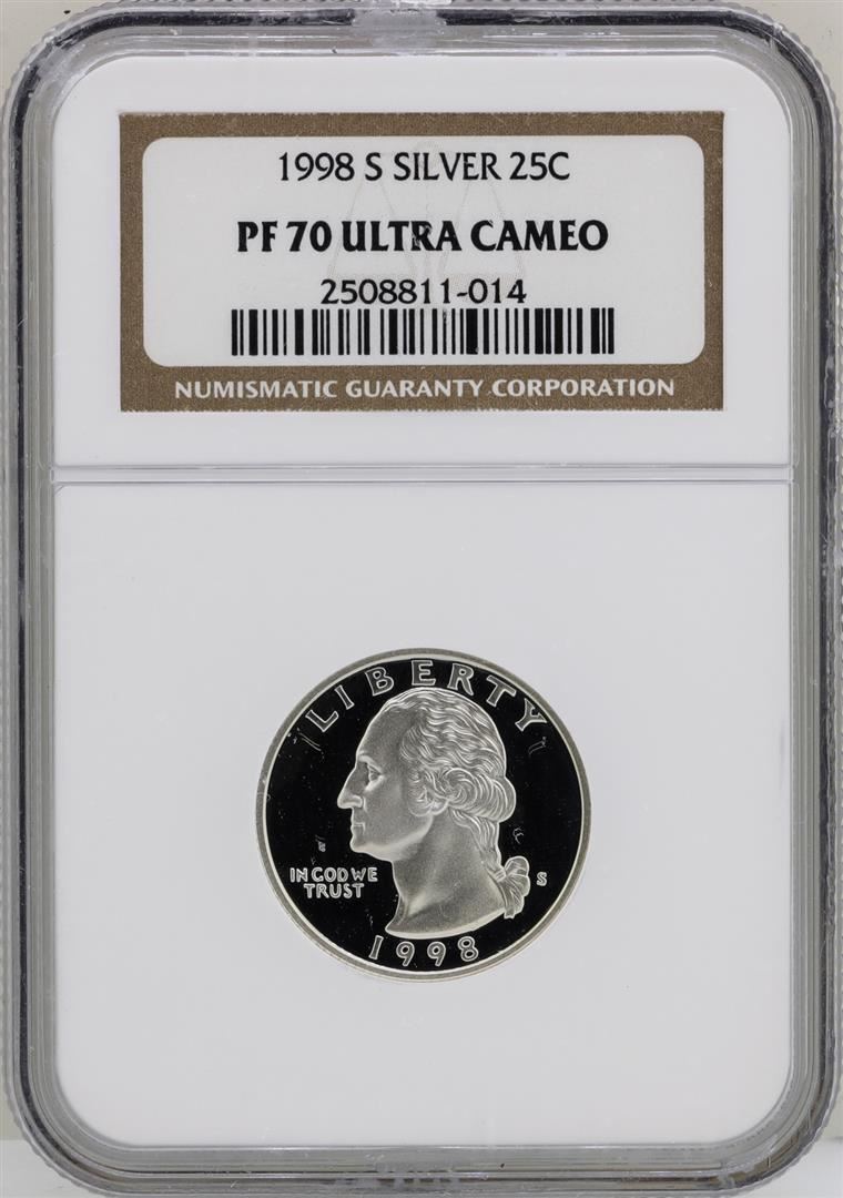 One 1998-S Washington Silver Proof Quarter Coin NGC PF70 Ultra Cameo. NGC Certified.