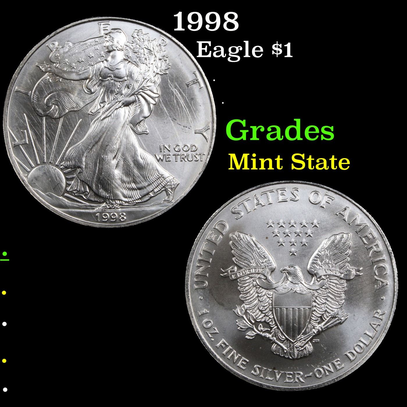 1998 Silver Eagle Dollar $1 Grades Mint State.