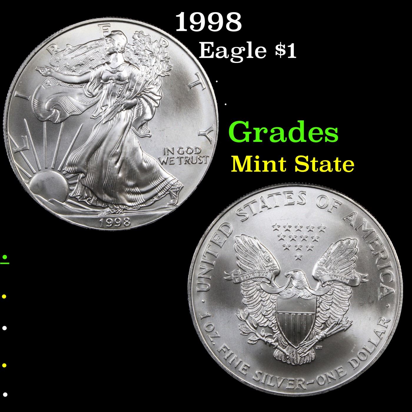 1998 Silver Eagle Dollar $1 Grades Mint State.