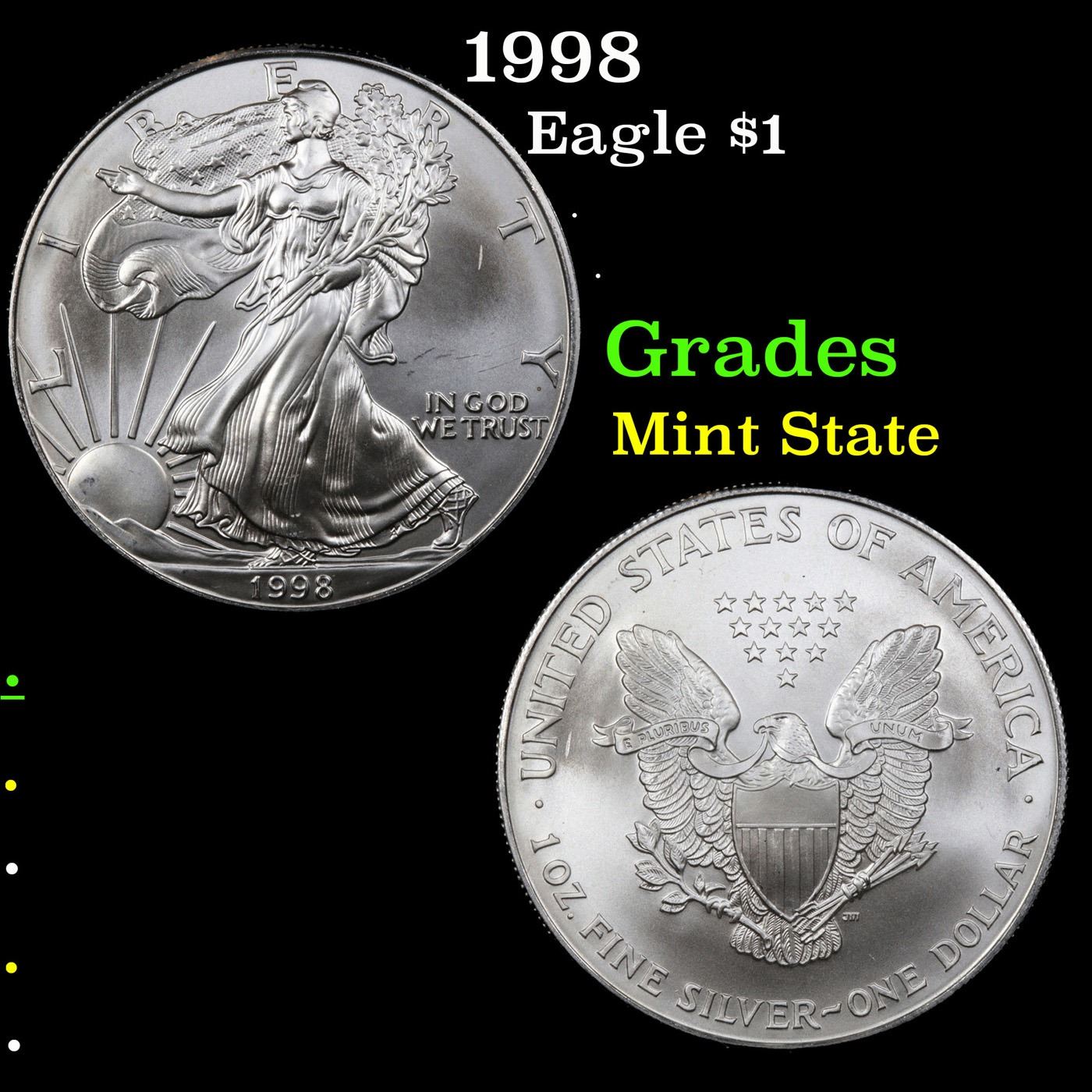 1998 Silver Eagle Dollar $1 Grades Mint State.